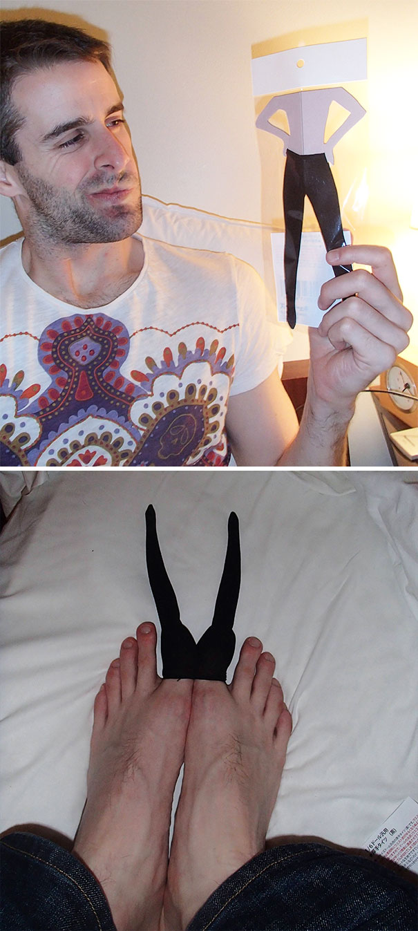 Come molti uomini il signore della foto provava un po’ di imbarazzo a comprare i collant in un negozio tradizionale e in questo caso non c’entra niente il travestitismo, stava semplicemente cercando qualcosa da indossare per Halloween. Quello che ha ottenuto sembrava molto conveniente ma forse c’è stato un piccolo errore nella scelta della taglia.